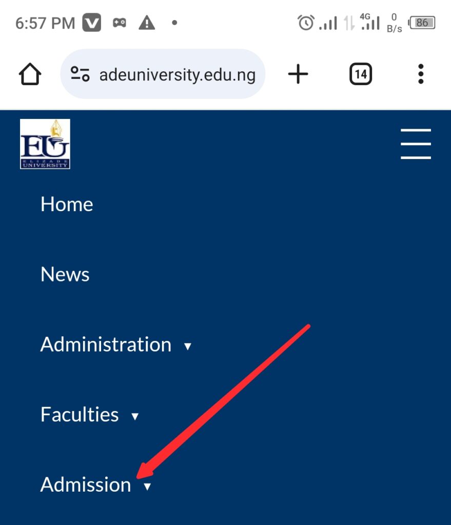 Open your internet browser. Type this address: www.elizadeuniversity.edu.ng. Press enter.