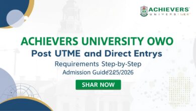 Achievers University Owo Post UTME and Direct Entry Requirements Step-by-Step Admission Guide 2025/2026